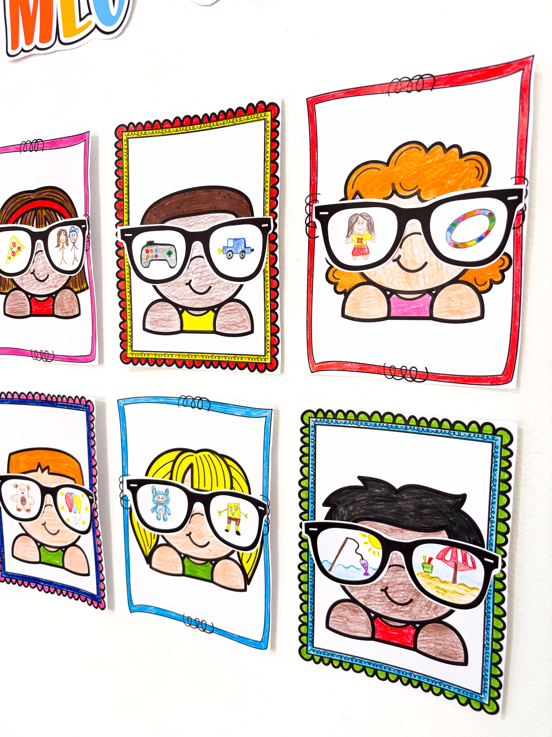 • ✅ Os alunos desenham nos óculos momentos especiais que viveram nas férias… e é uma delícia ver o que cada criança escolhe registrar.