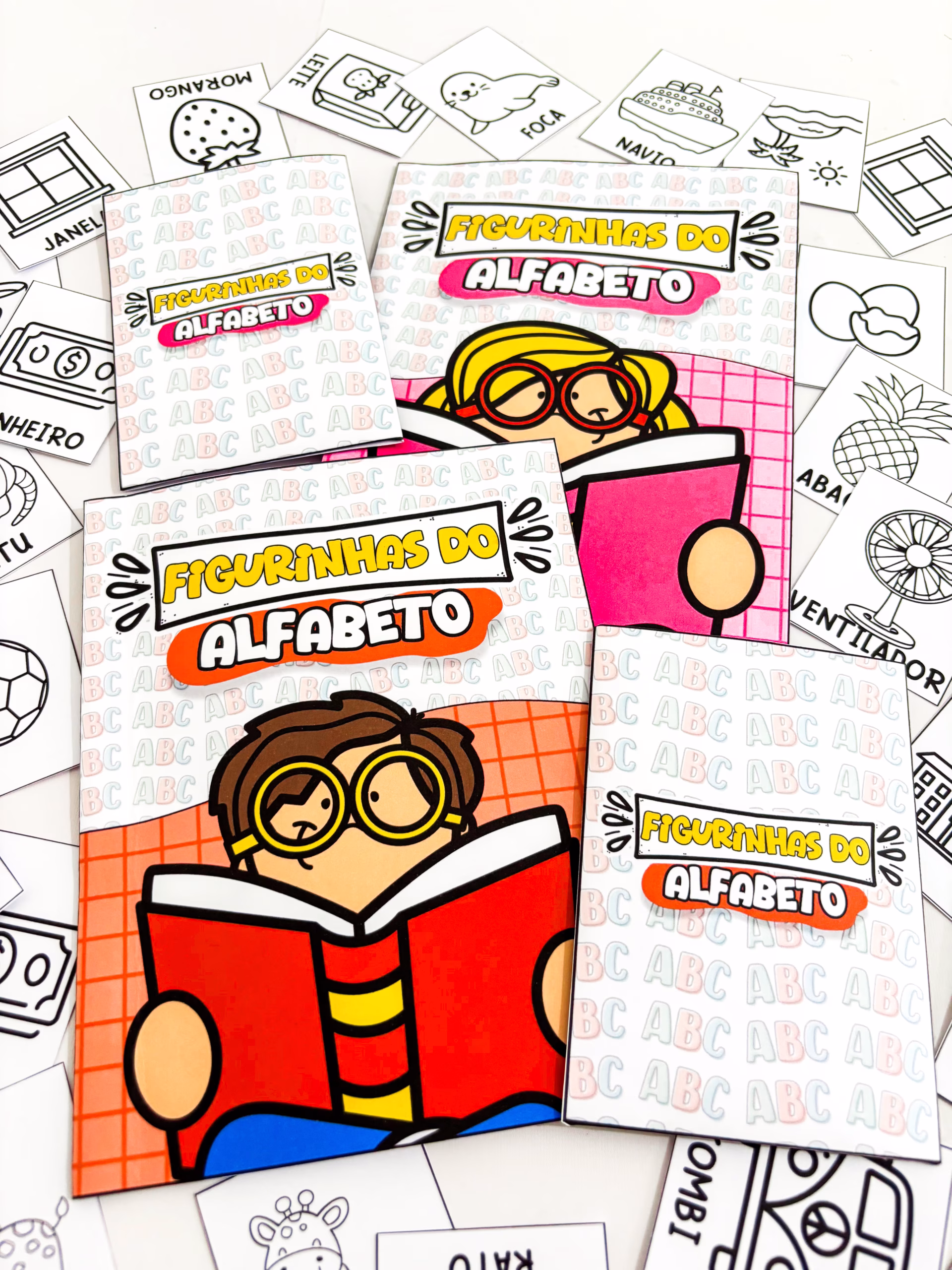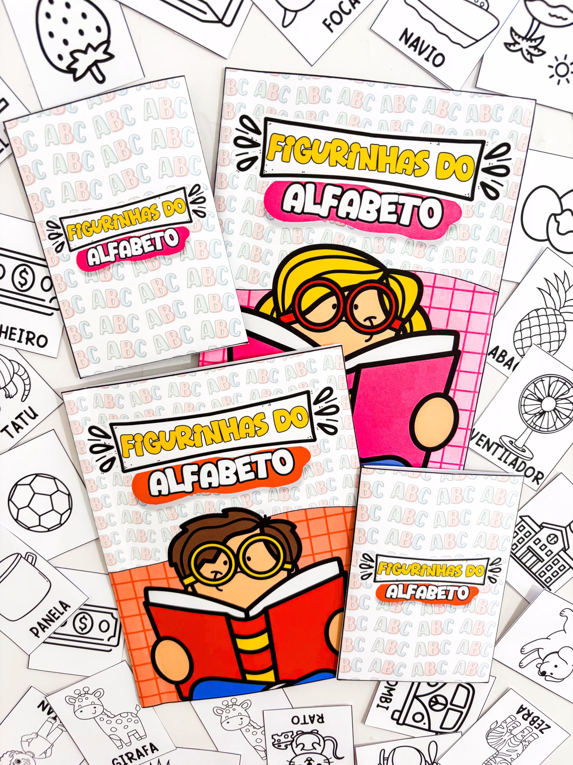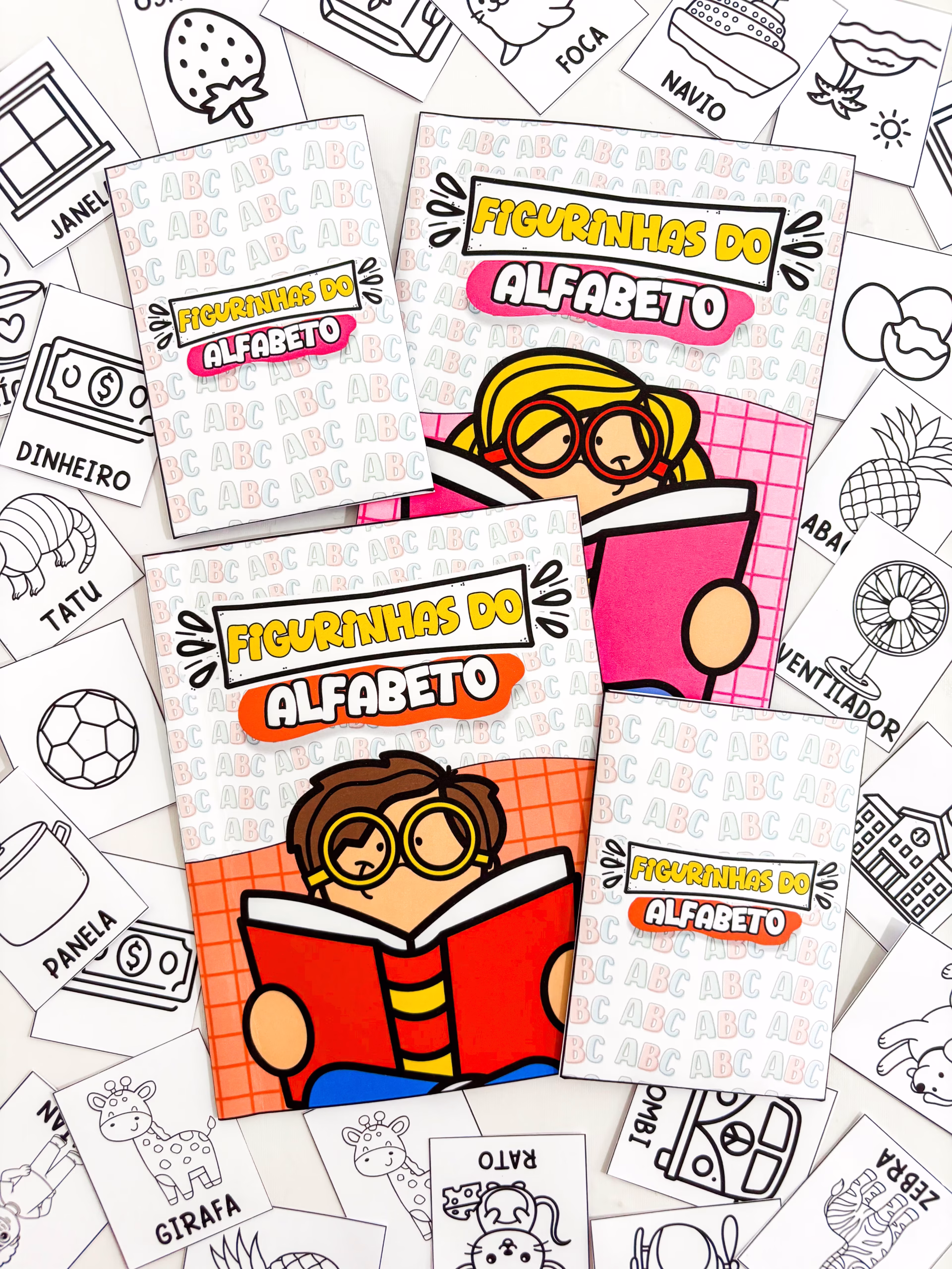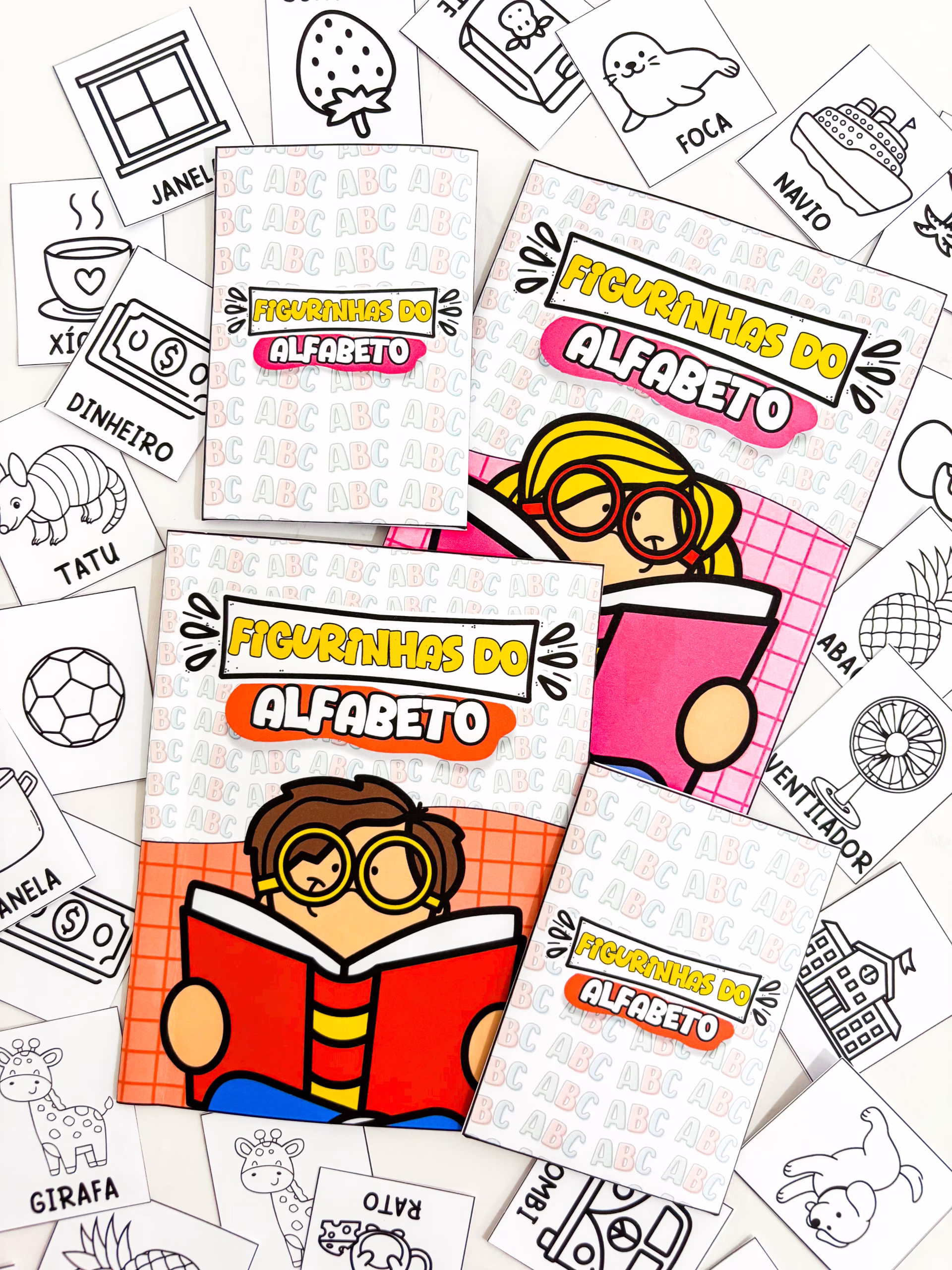 ✅ Imagina um álbum do alfabeto com capa colorida, páginas organizadas letra por letra e figurinhas fofas para colorir, onde cada criança constrói o seu próprio caminho na alfabetização.