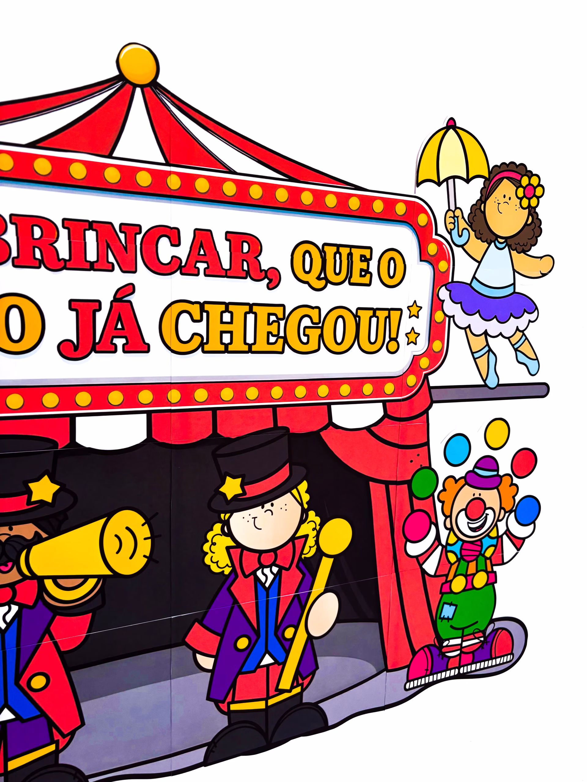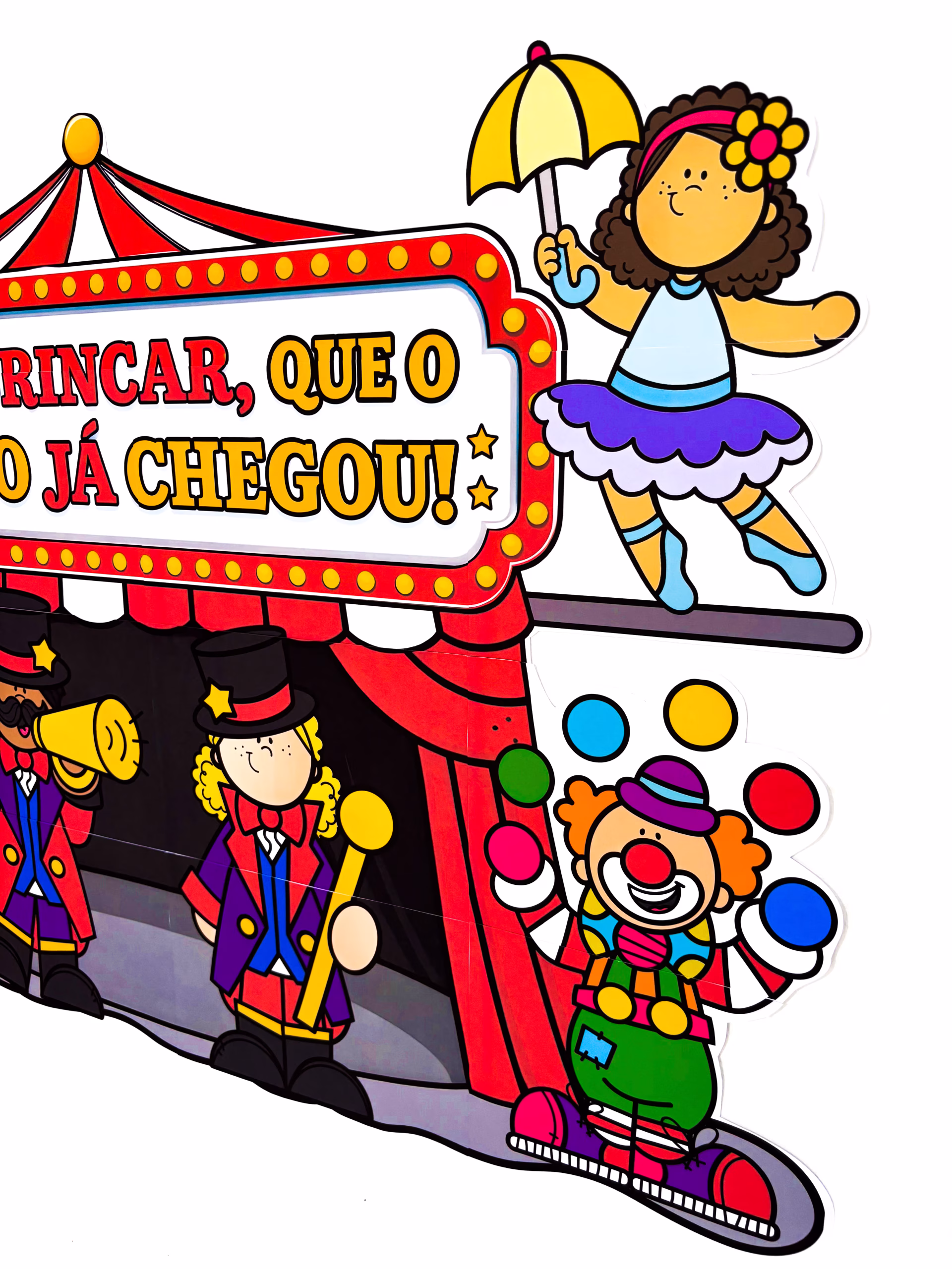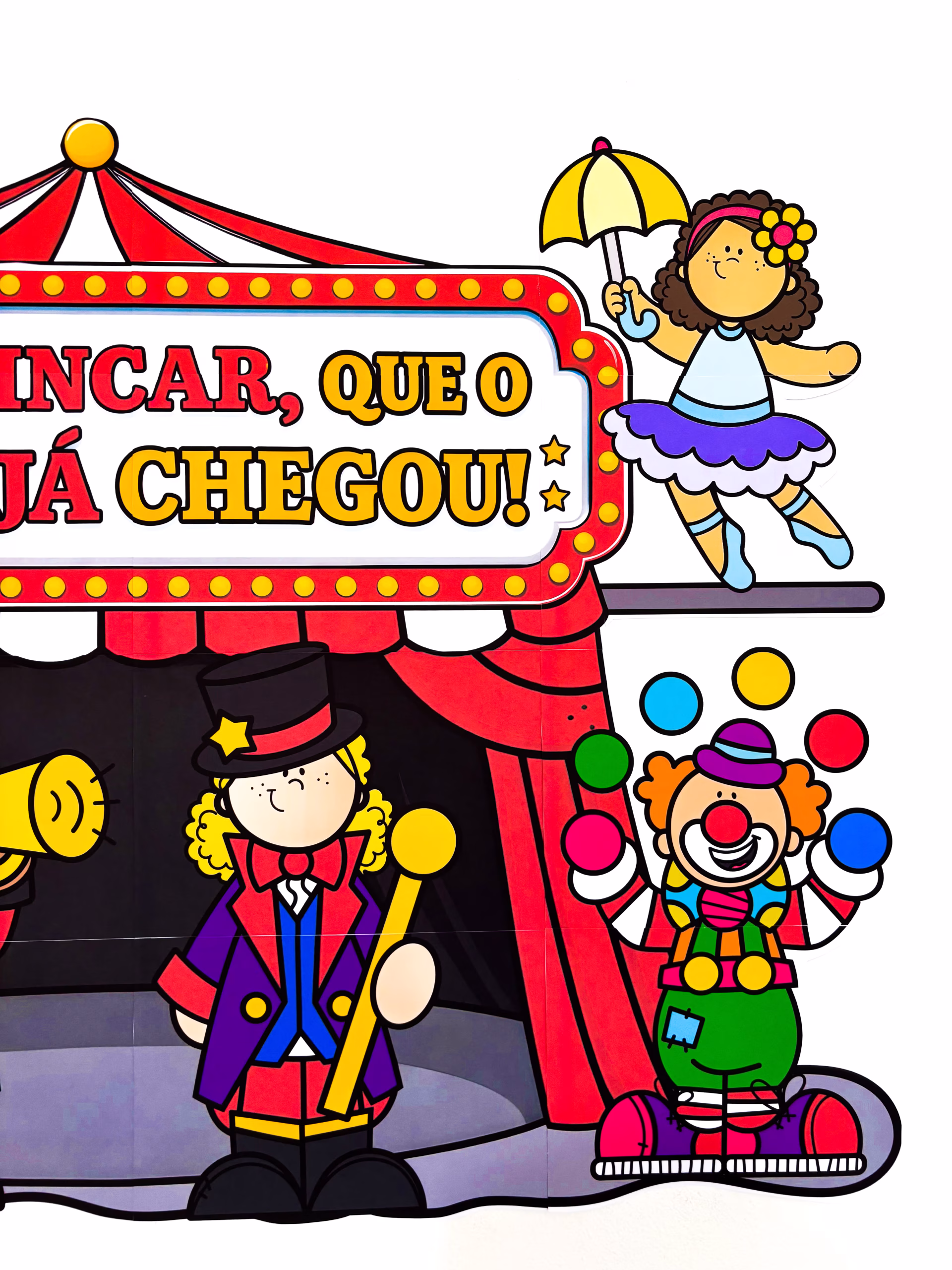 ✅ A frase “Vem brincar, que o circo já chegou!” já abre a porta da imaginação.
