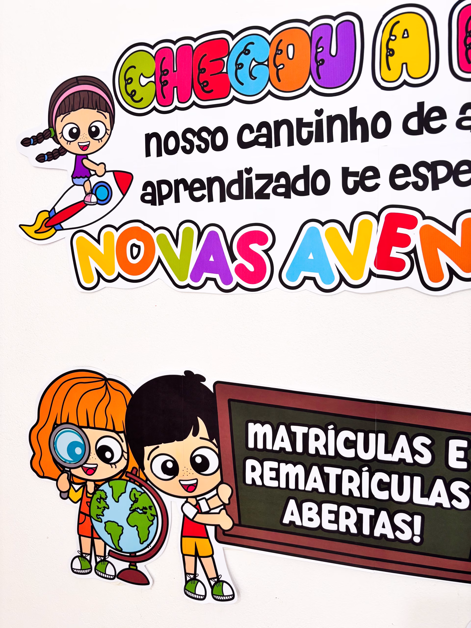 ✅ Colorido, alegre e cheio de encanto, ele transforma o aviso de “Matrículas e Rematrículas Abertas” em um verdadeiro convite para viver um novo ano cheio de descobertas!