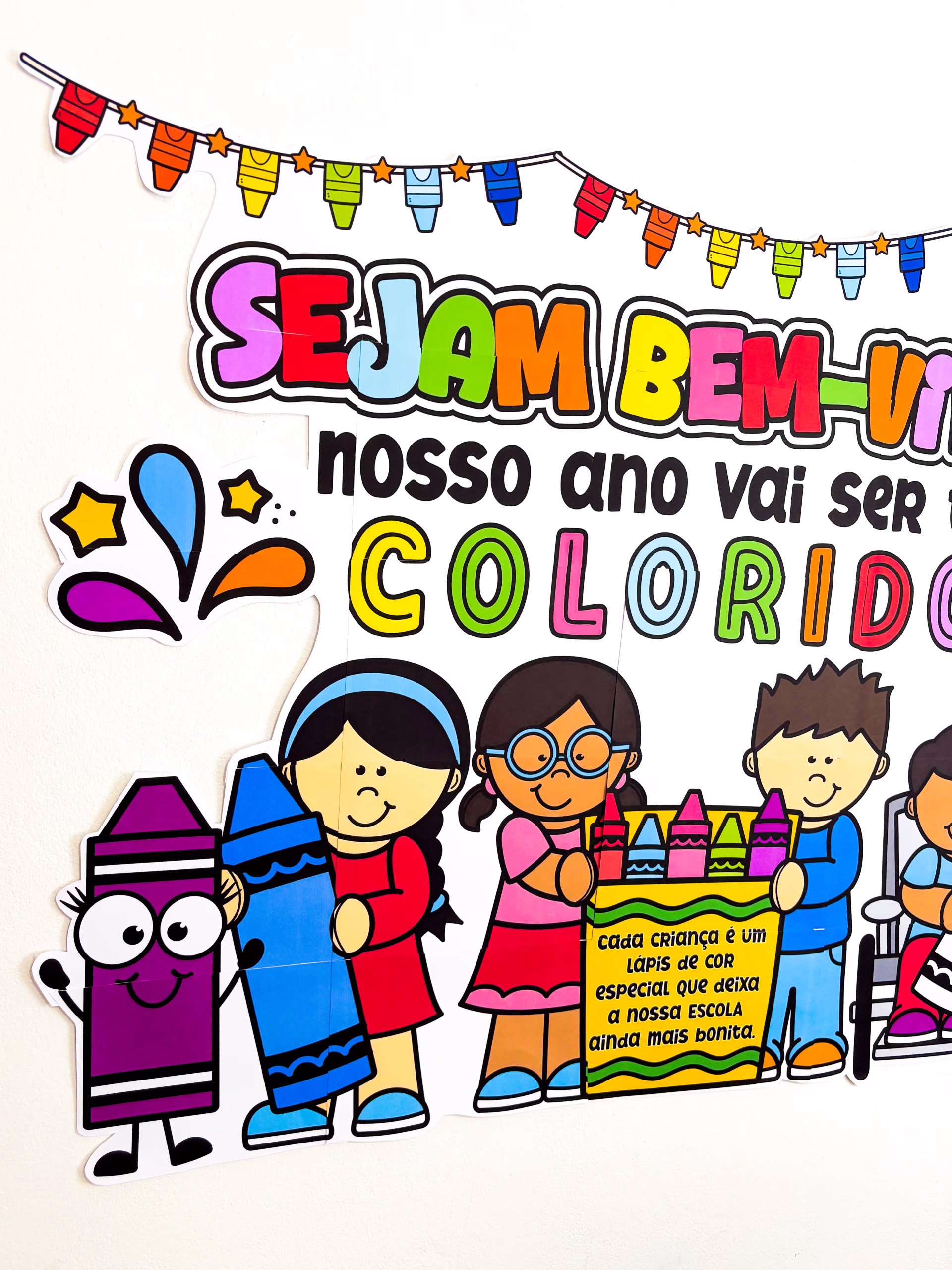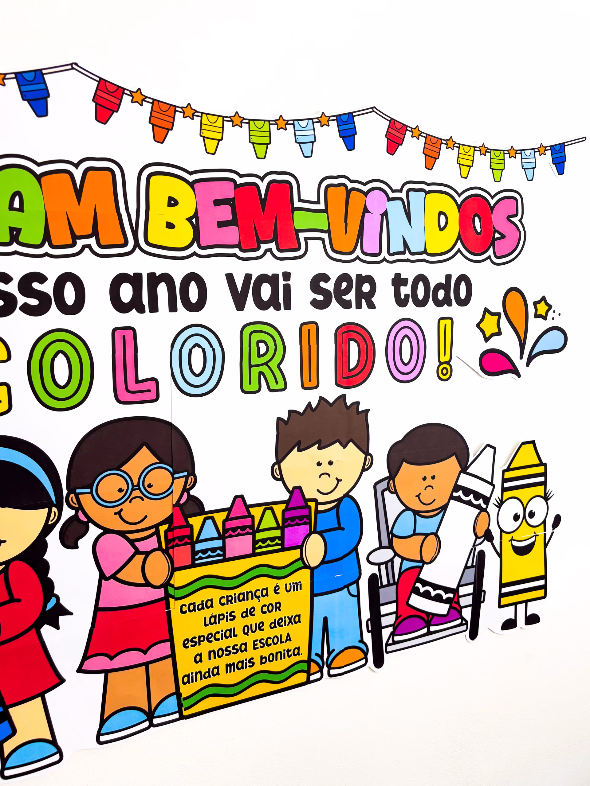✅ Com 1.34 x 0.95 m, ele já chega iluminando o ambiente e deixando tudo com aquela carinha colorida que a gente ama pra começar o ano com a turma.