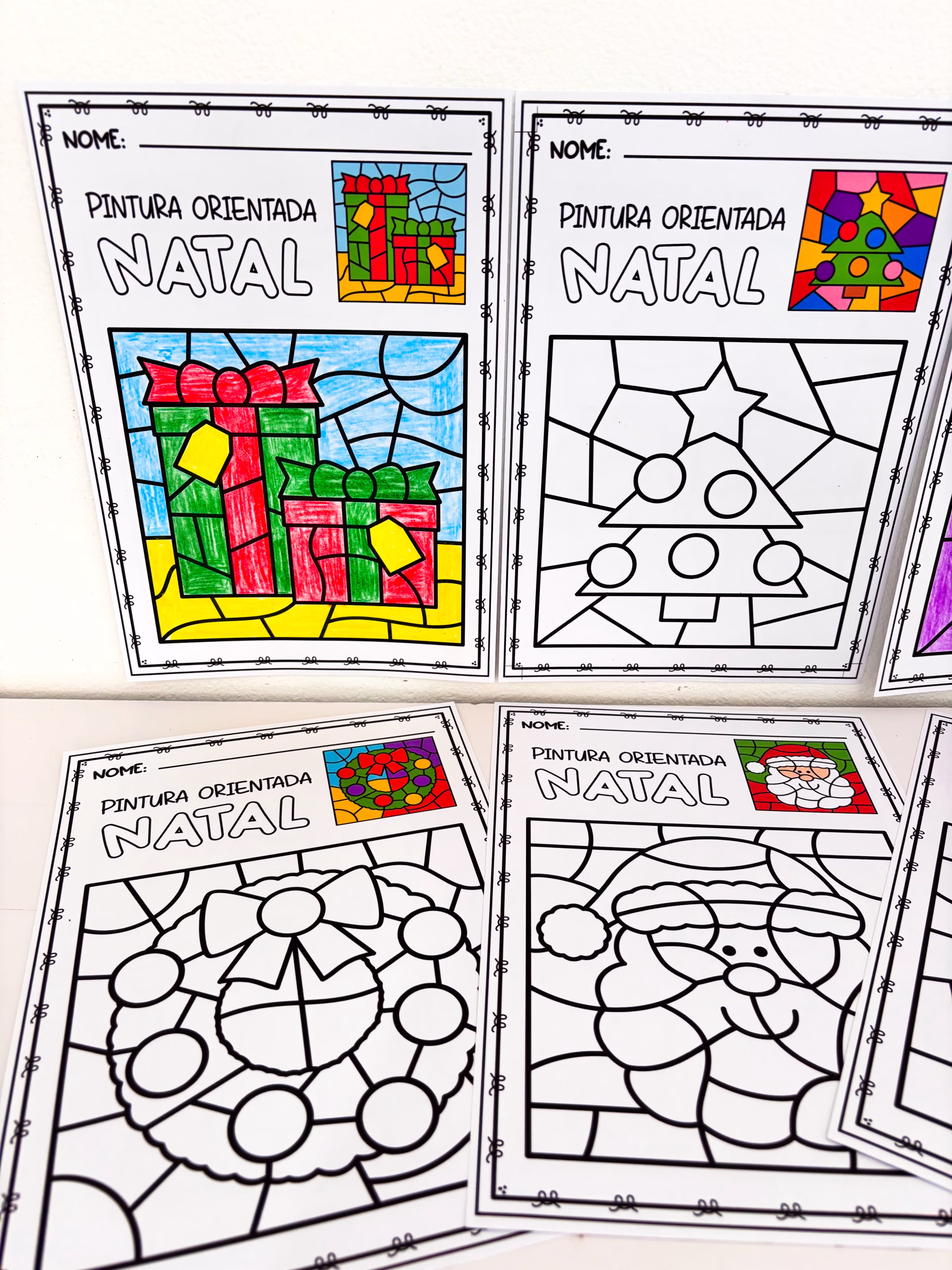 ✅ No combo com 6 atividades de pintura orientada, o desenho colorido já vem na própria folha, servindo como referência para que a criança observe, compare e pinte seguindo o modelo.