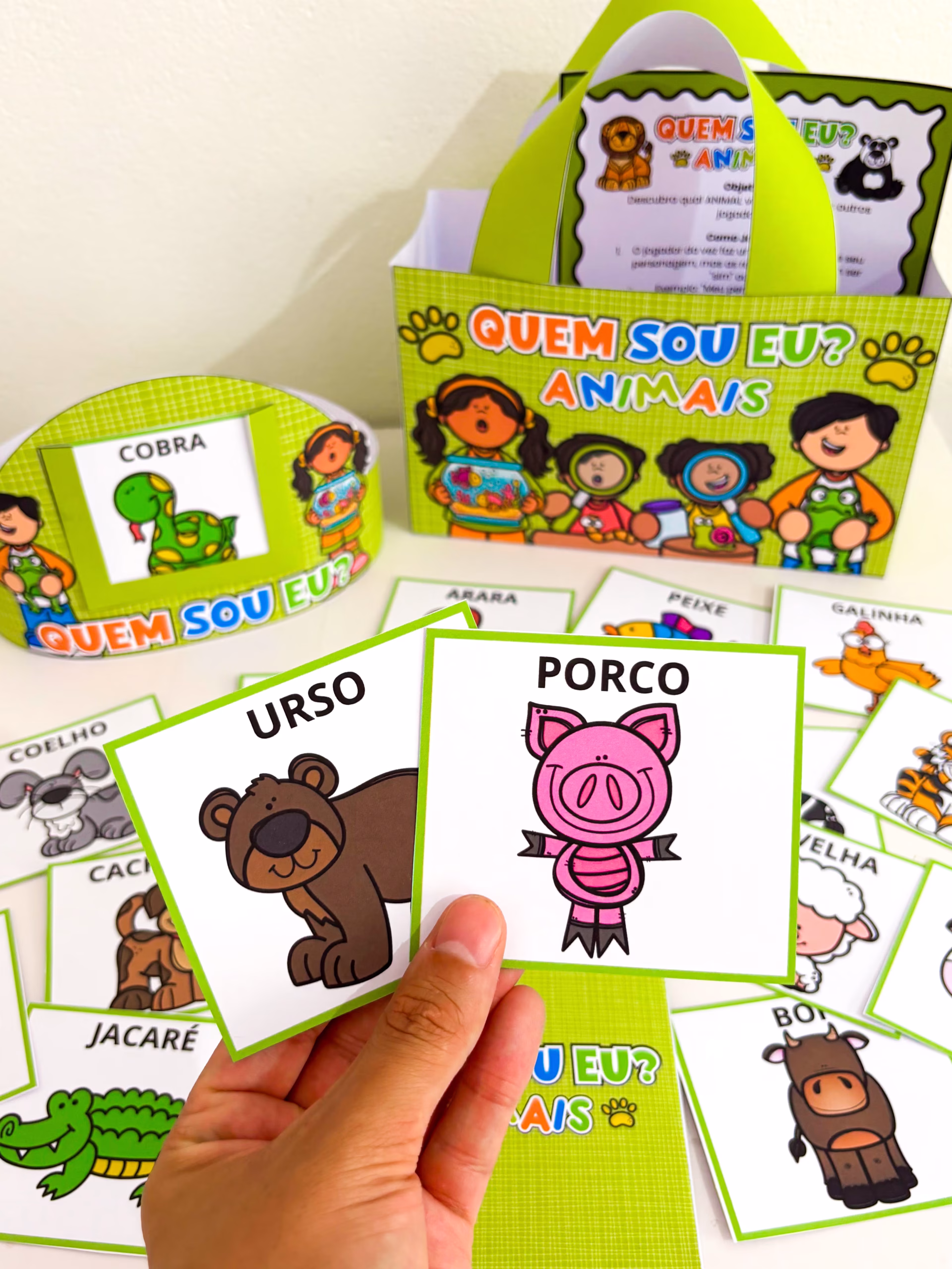 • ✅ Com esse jogo inspirado no clássico “Quem Sou Eu?”, as crianças se encantam ao tentar descobrir os animais de forma leve e interativa.