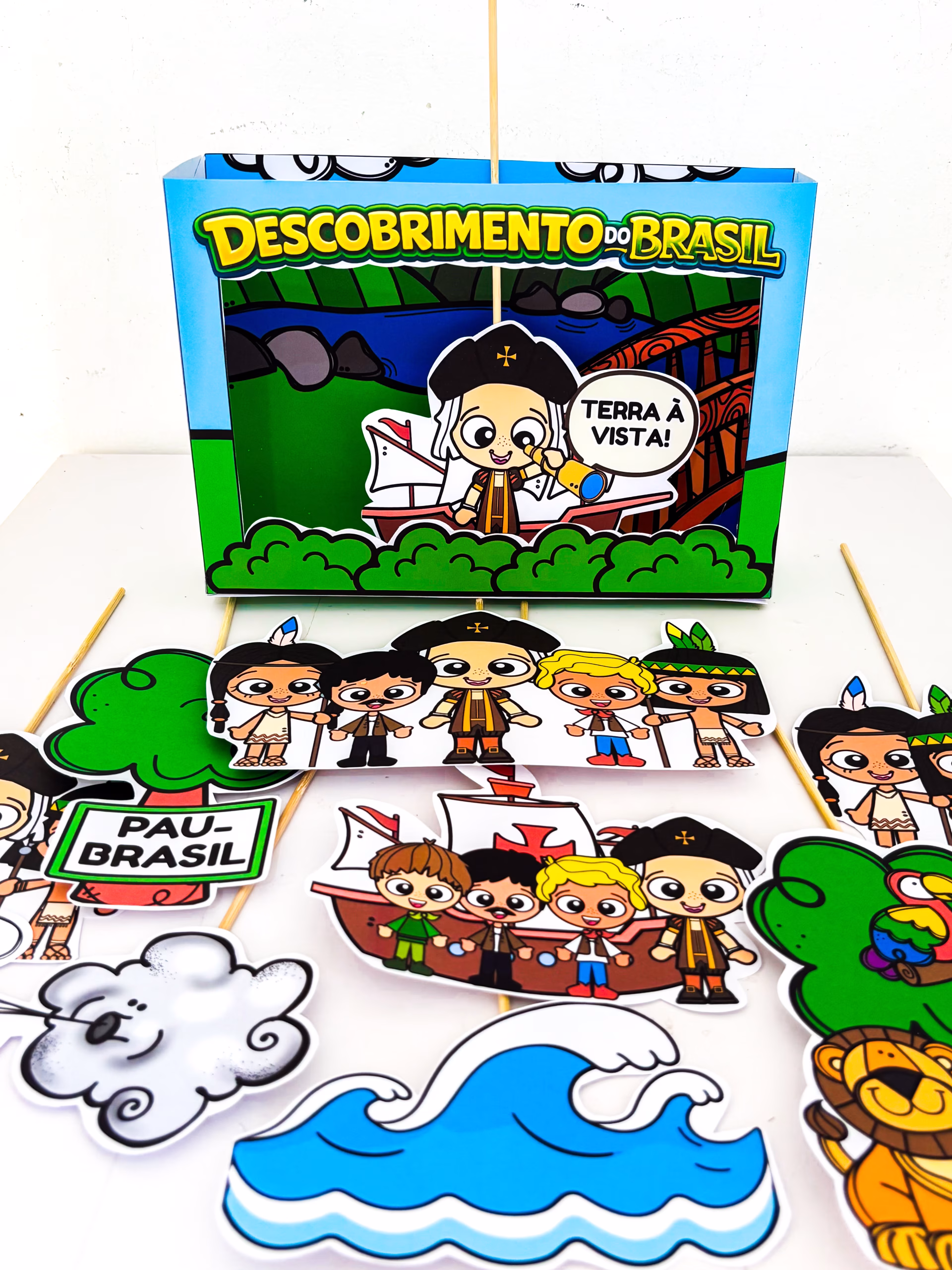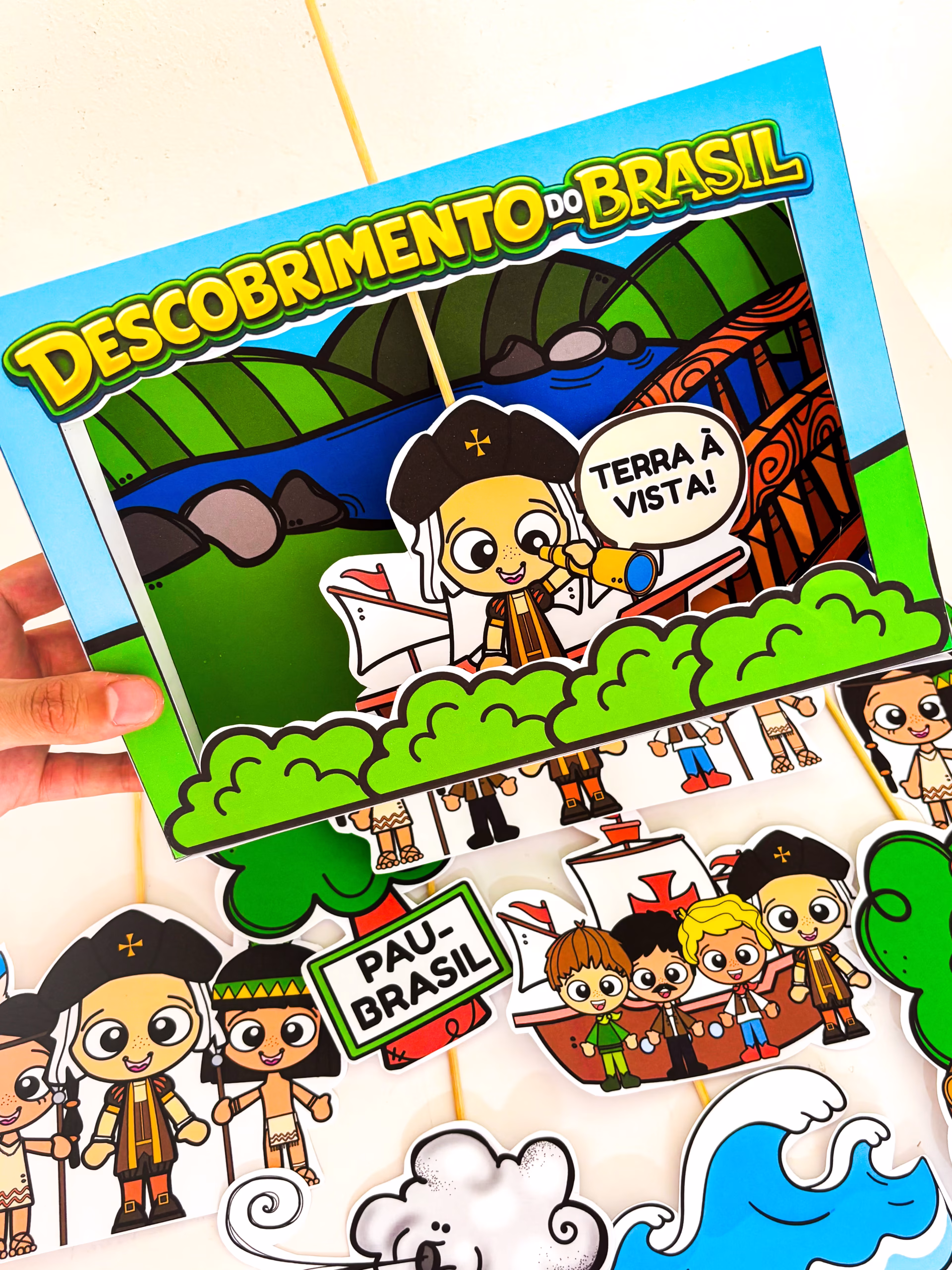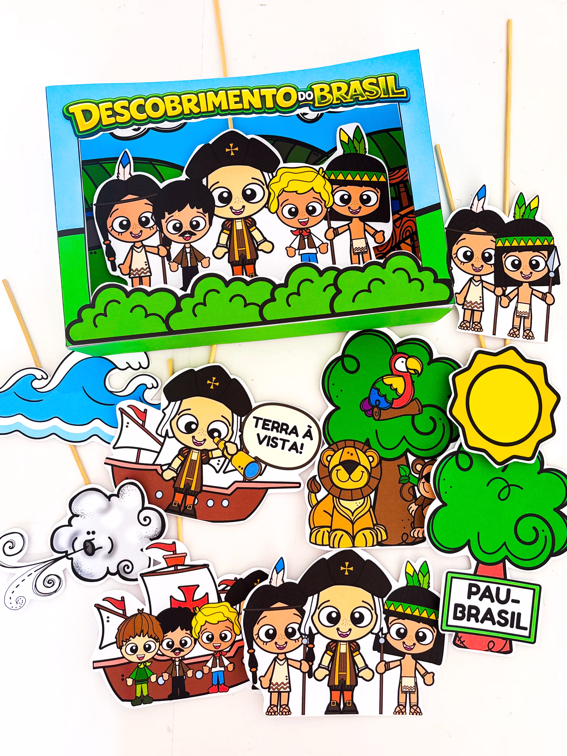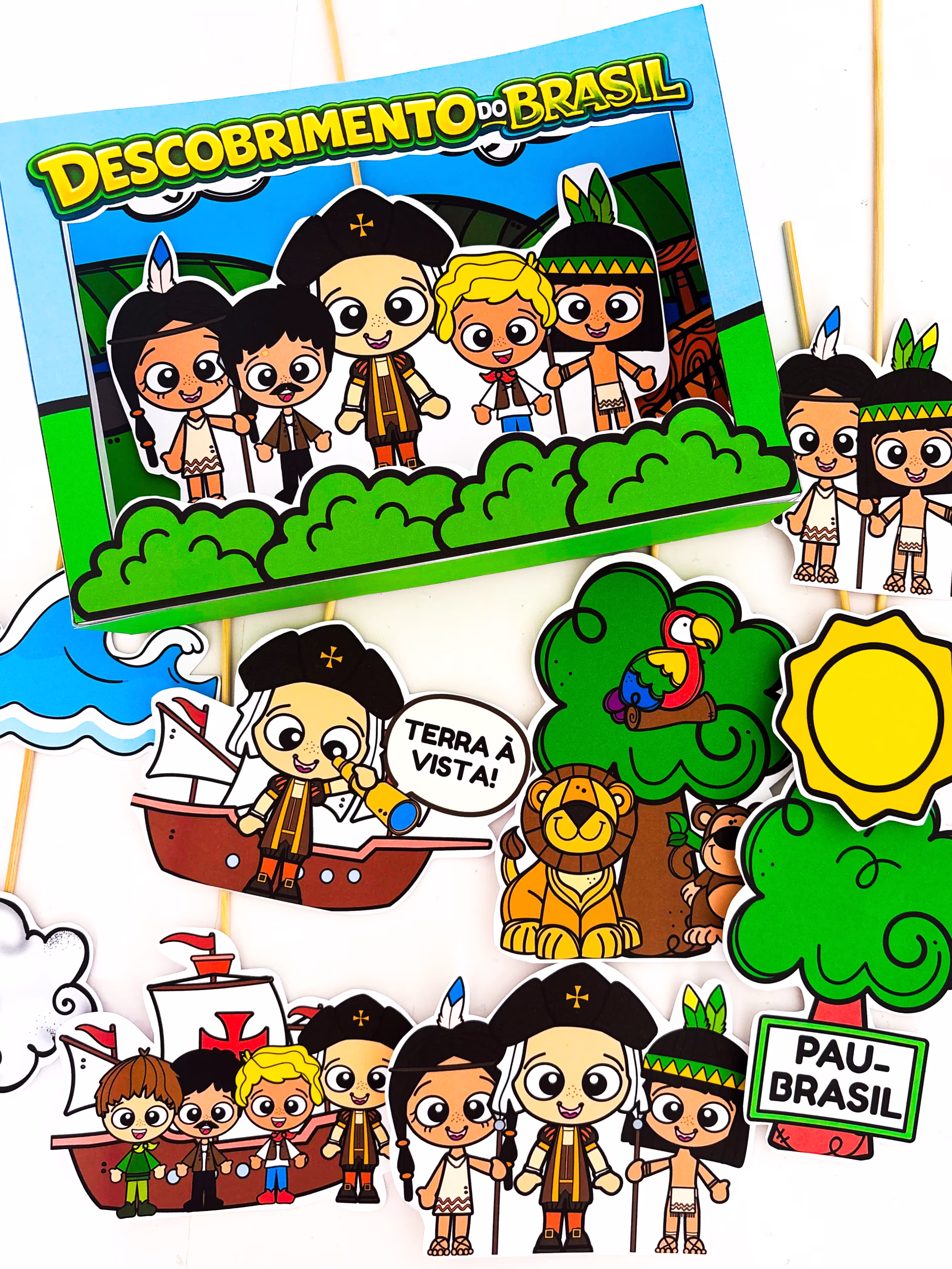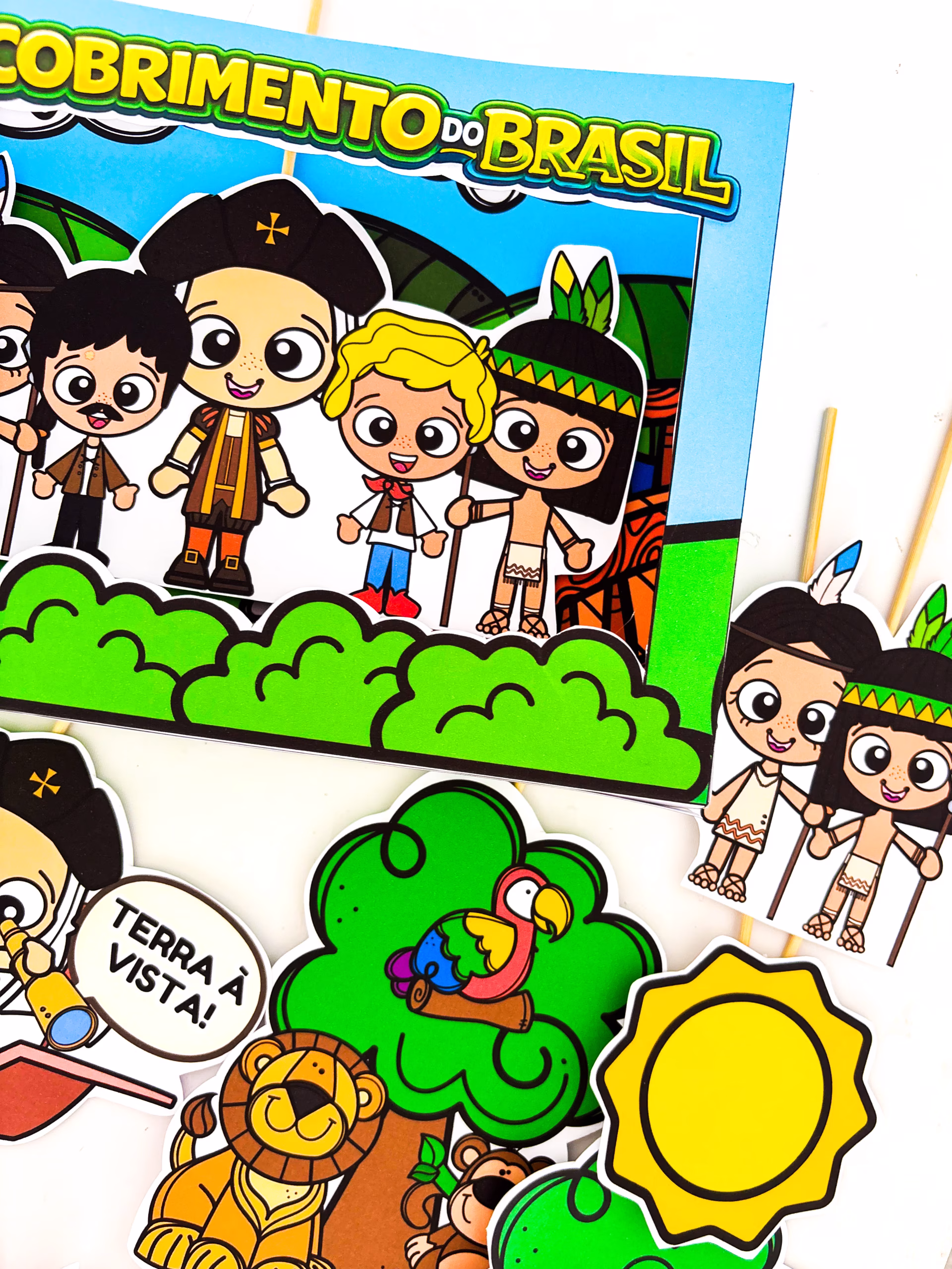 ✅ Esse teatrinho de palitoches transforma o “Descobrimento do Brasil” em uma experiência leve, visual e cheia de significado para os pequenos.